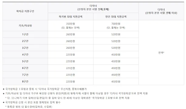 다자녀 국가장학금 지원 금액